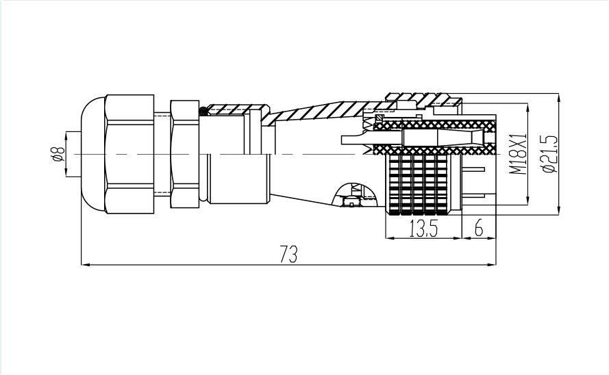 接触体材料 | 铜(镀银/ 金) | 电缆直径 | ≤ φ10mm |