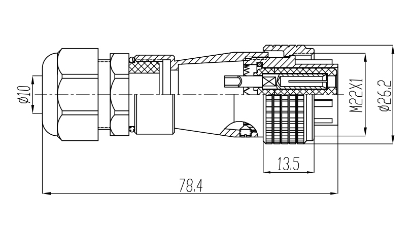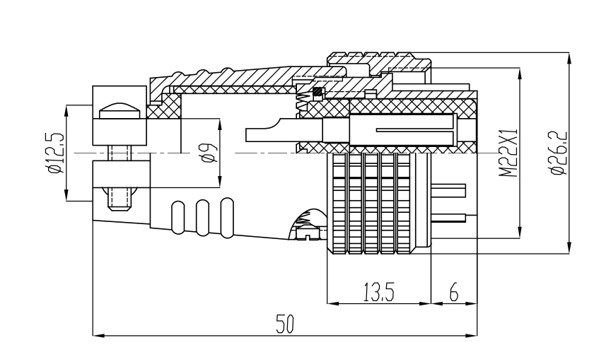 接触体材料 | 铜(镀银/ 金) | 电缆直径 | φ6 ~ ≤ φ12.5mm |
