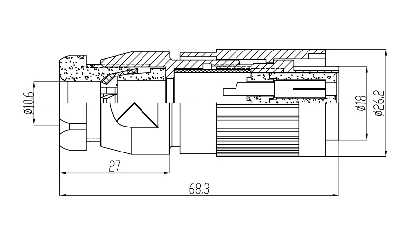 绝缘体 | 高性能工程塑料 | 电缆直径 | φ6 ~ ≤ φ12mm |