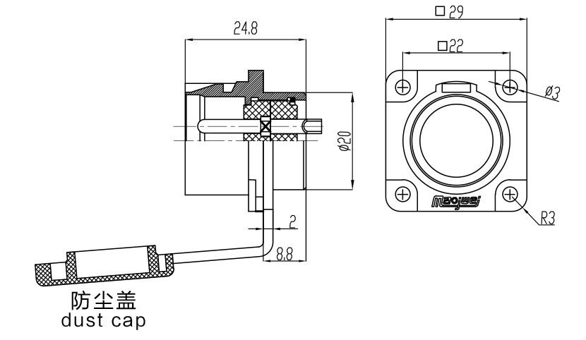 接触体材料 | 铜(镀银/ 金) | 防护等级 | IP65 |